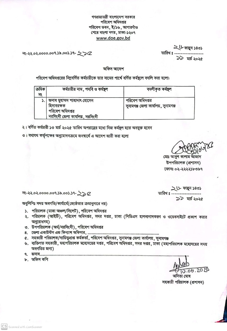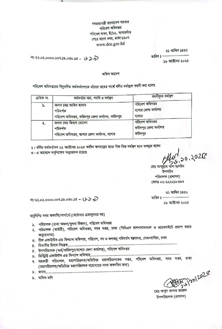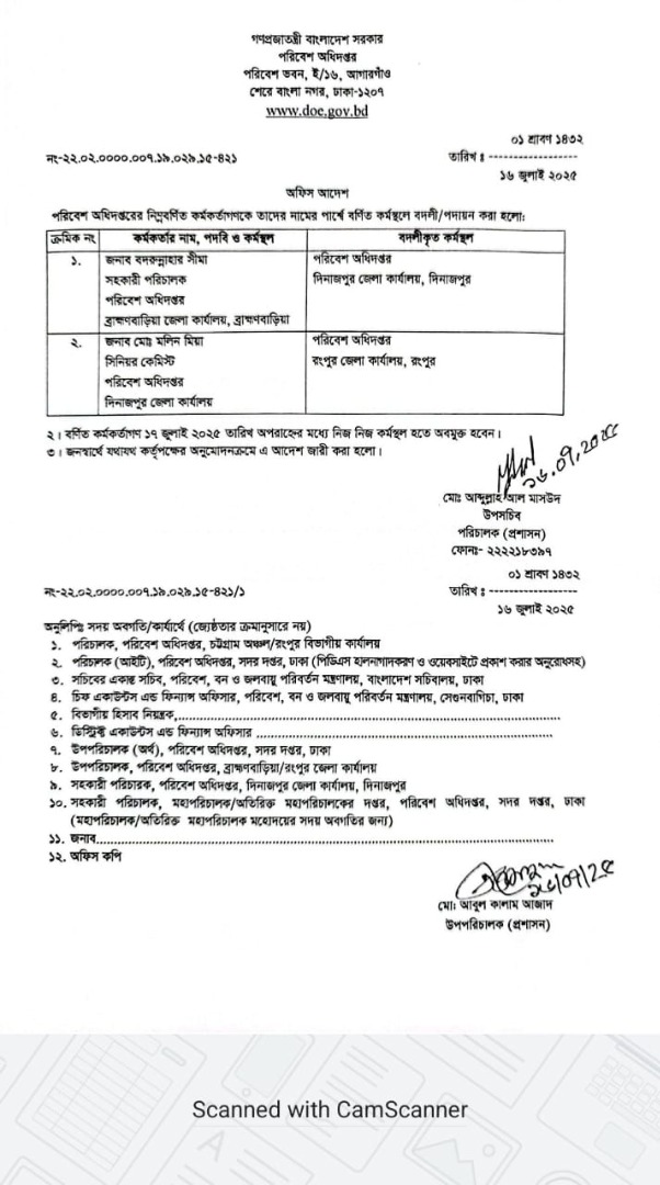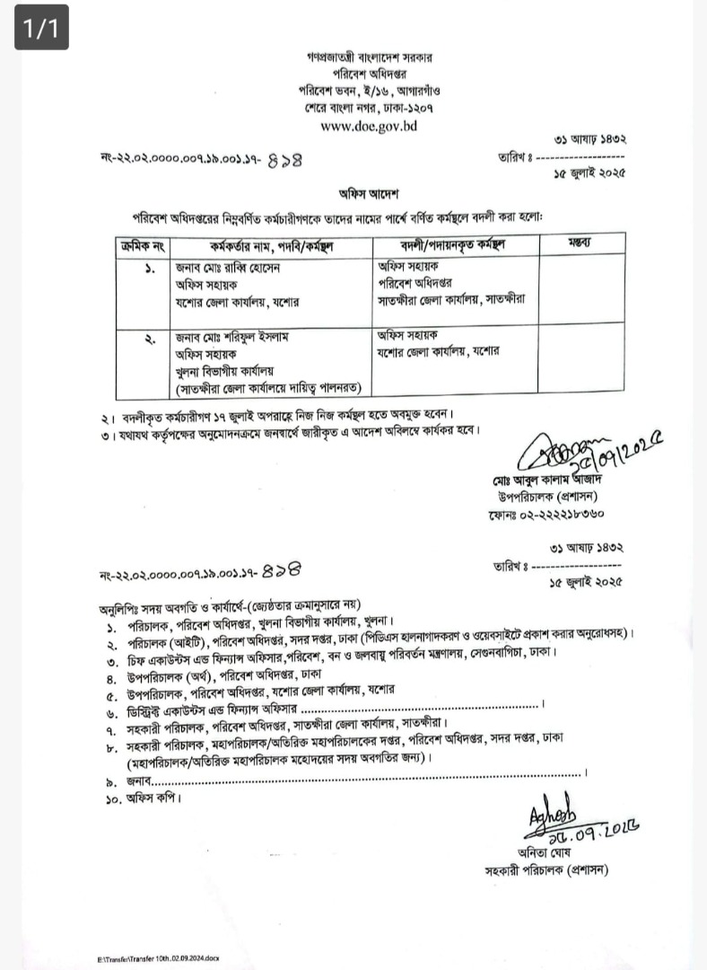 | বদলি আদেশ (অফিস সহায়ক) | ১৫ জুলাই ২০২৫ | Download |
