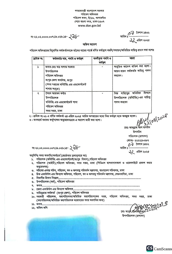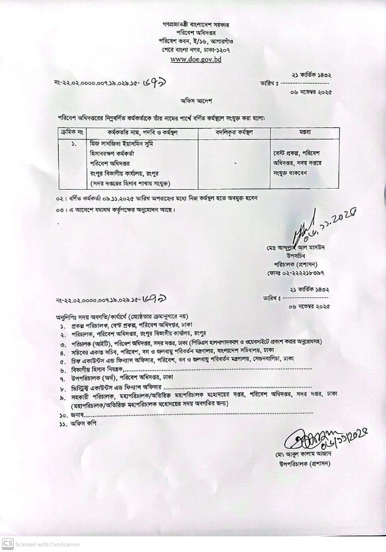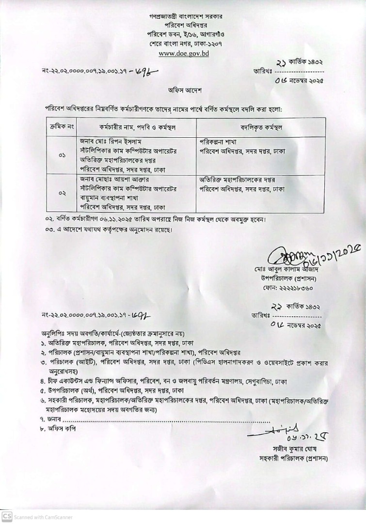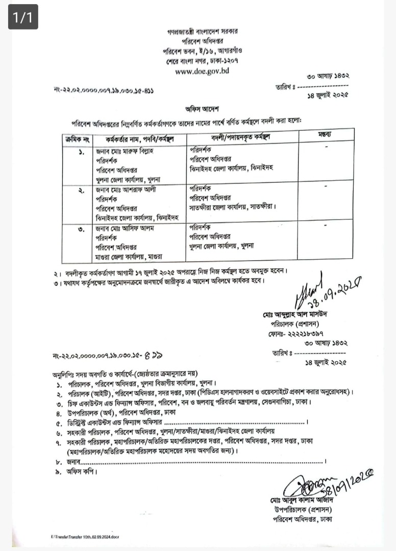 | বদলি আদেশ (অফিস সহায়ক) | ১৫ জুলাই ২০২৫ | Download |