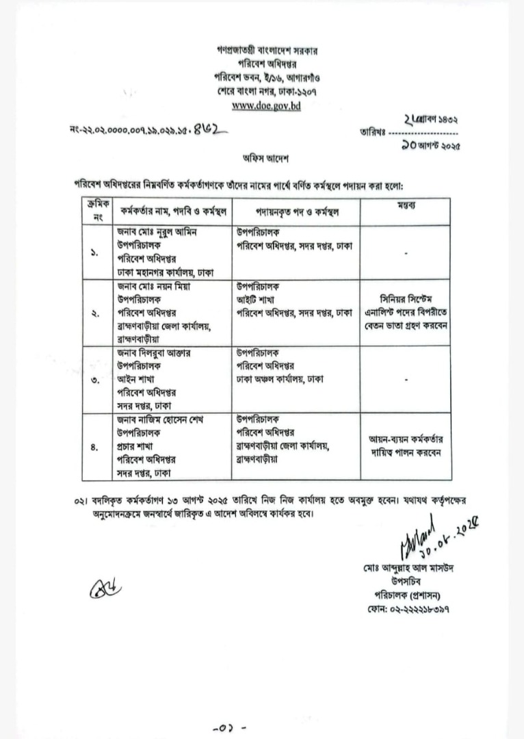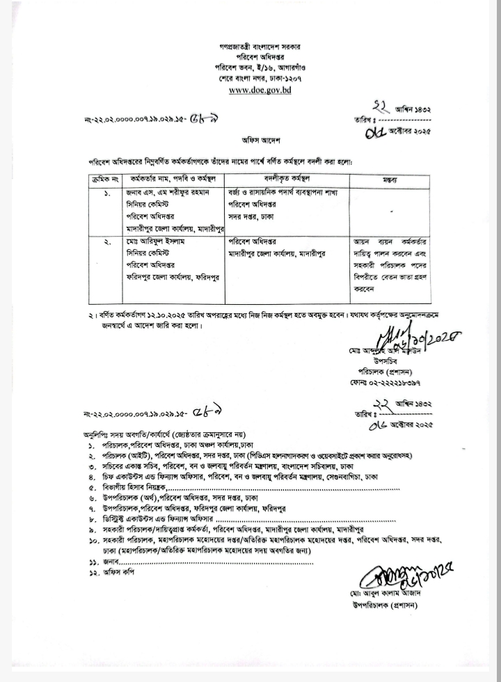 | বদলি আদেশ (সহকারি পরিচালক ও সিনিয়র কেমিস্ট) | ১৪ আগস্ট ২০২৫ | Download |