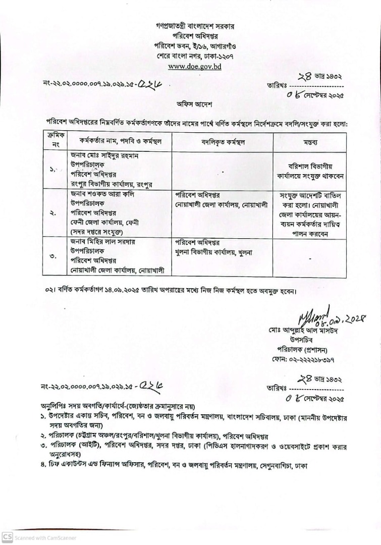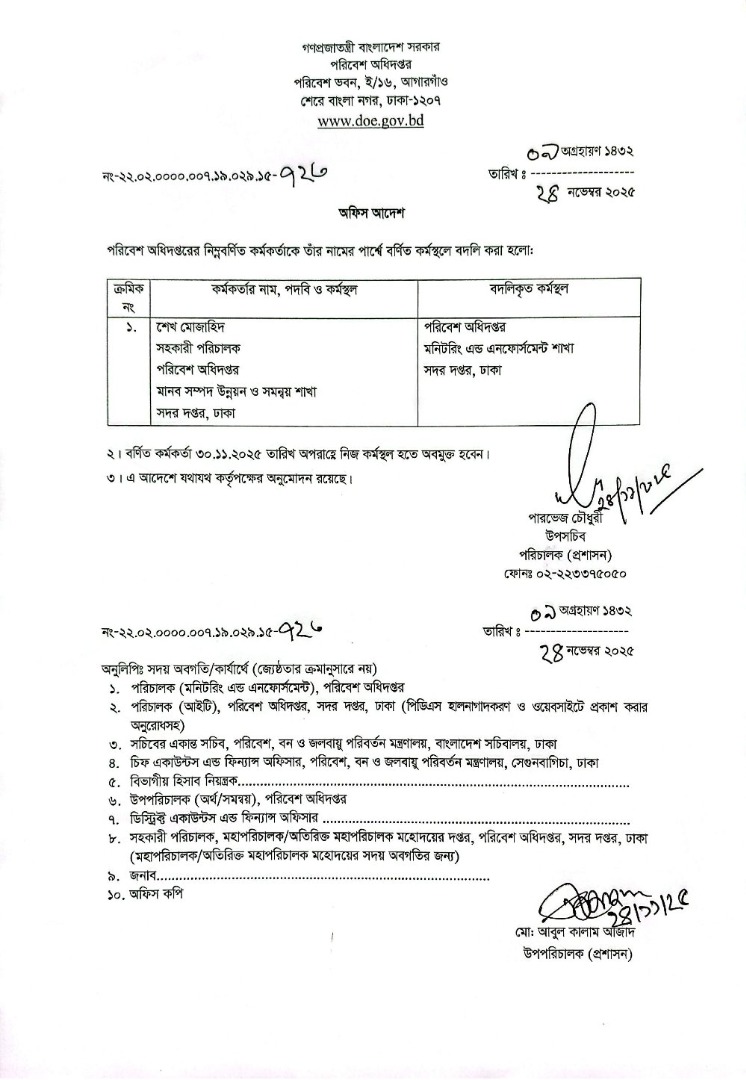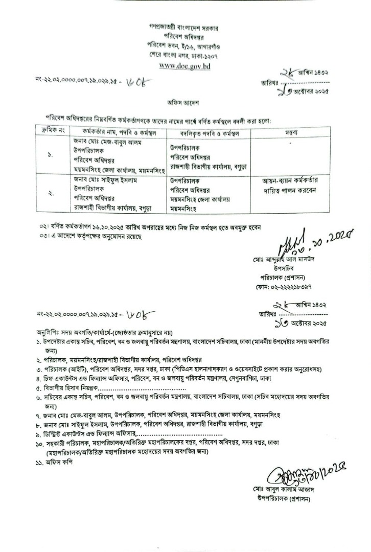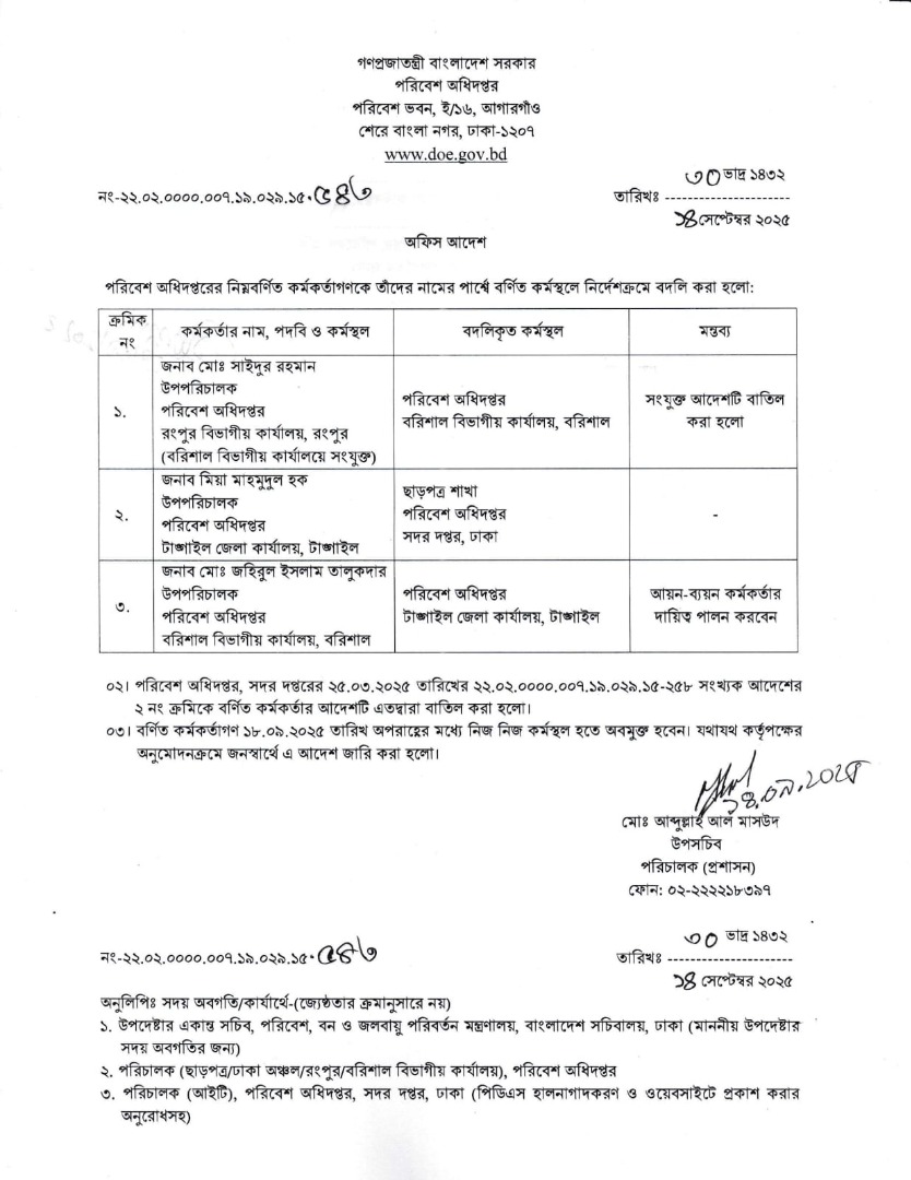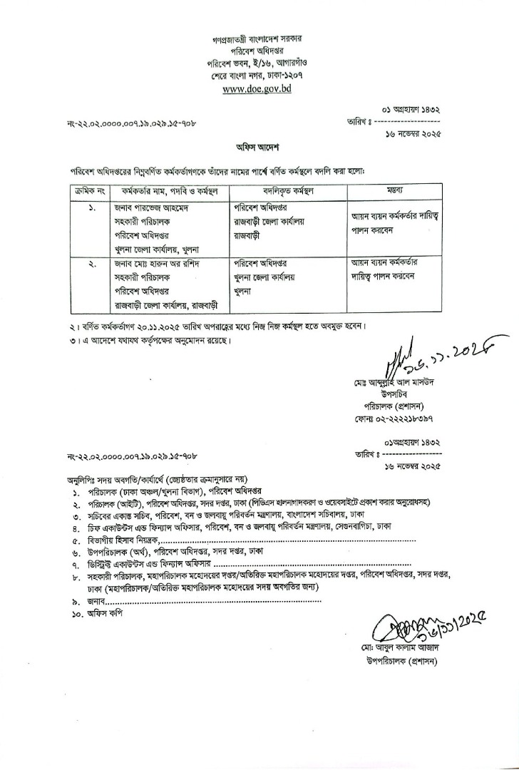 | বদলি আদেশ (উপপরিচালক) | ১১ ডিসেম্বর ২০২৫ | Download |