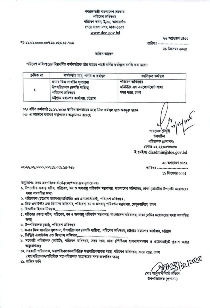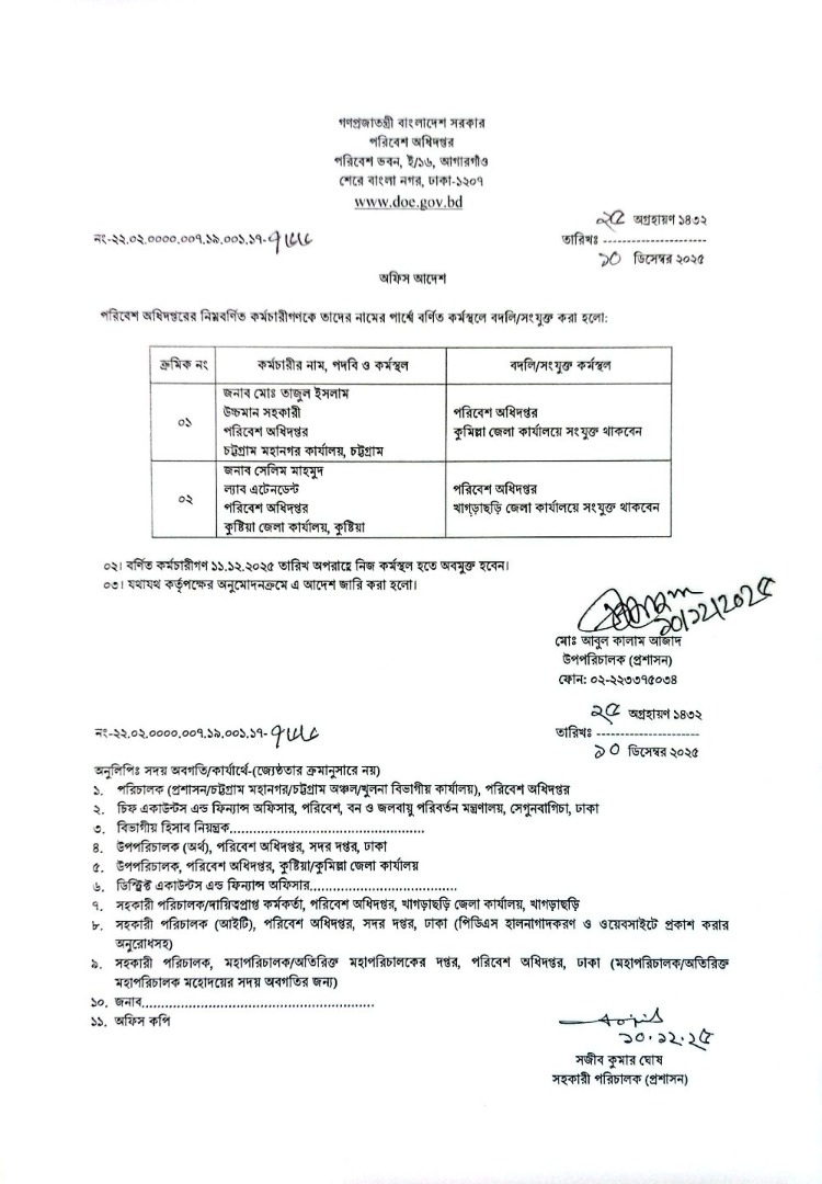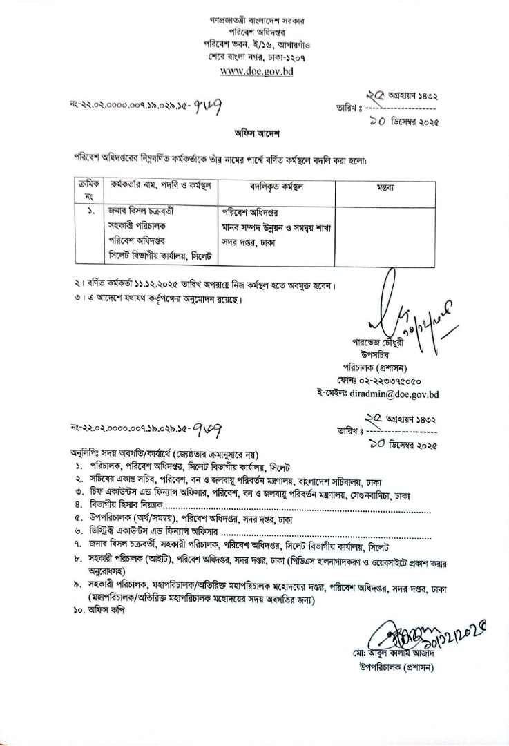 | বদলি আদেশ (পরিচালক) | ১১ ডিসেম্বর ২০২৫ | Download |