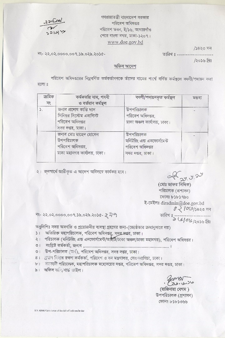 | কর্মচারীদের ট্রান্সফার/পোস্টিং আদেশ | ১৬ এপ্রিল ২০১৭ | Download |
