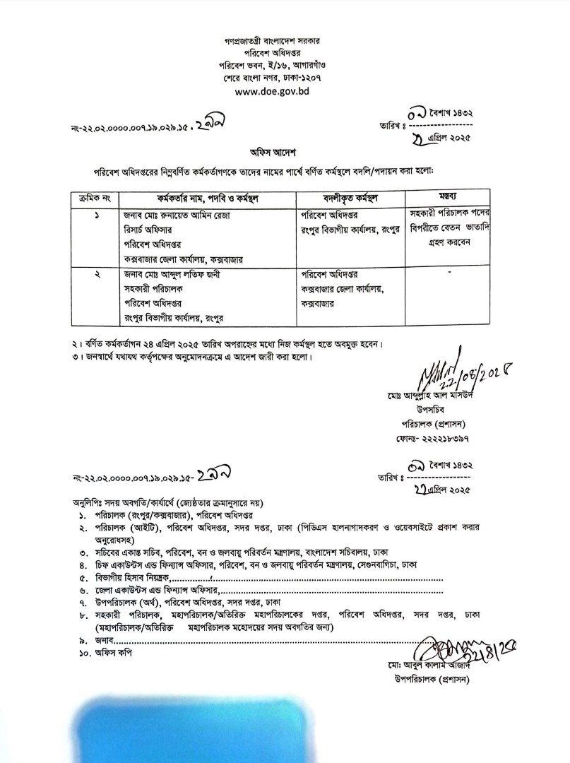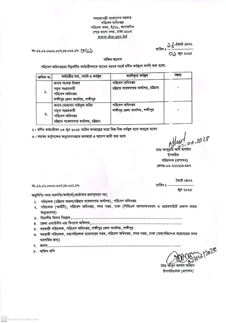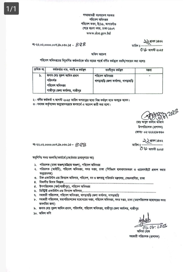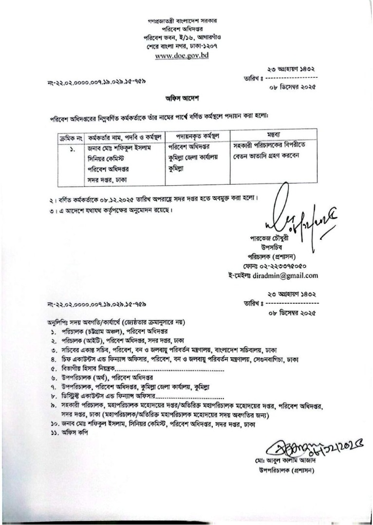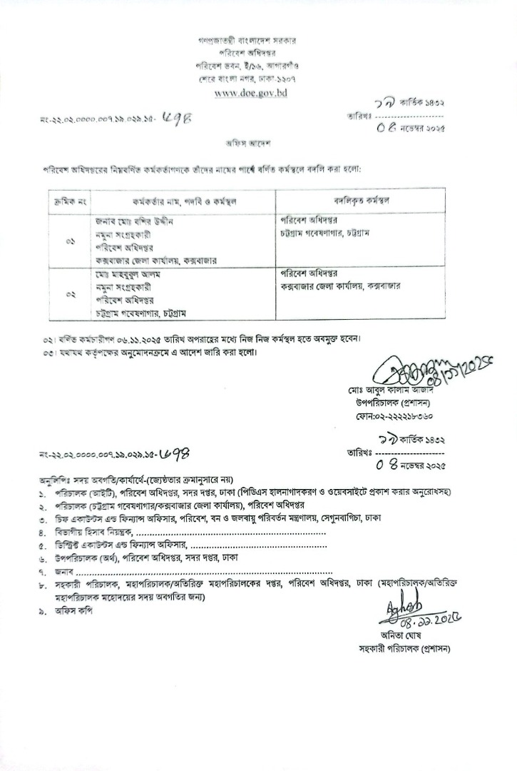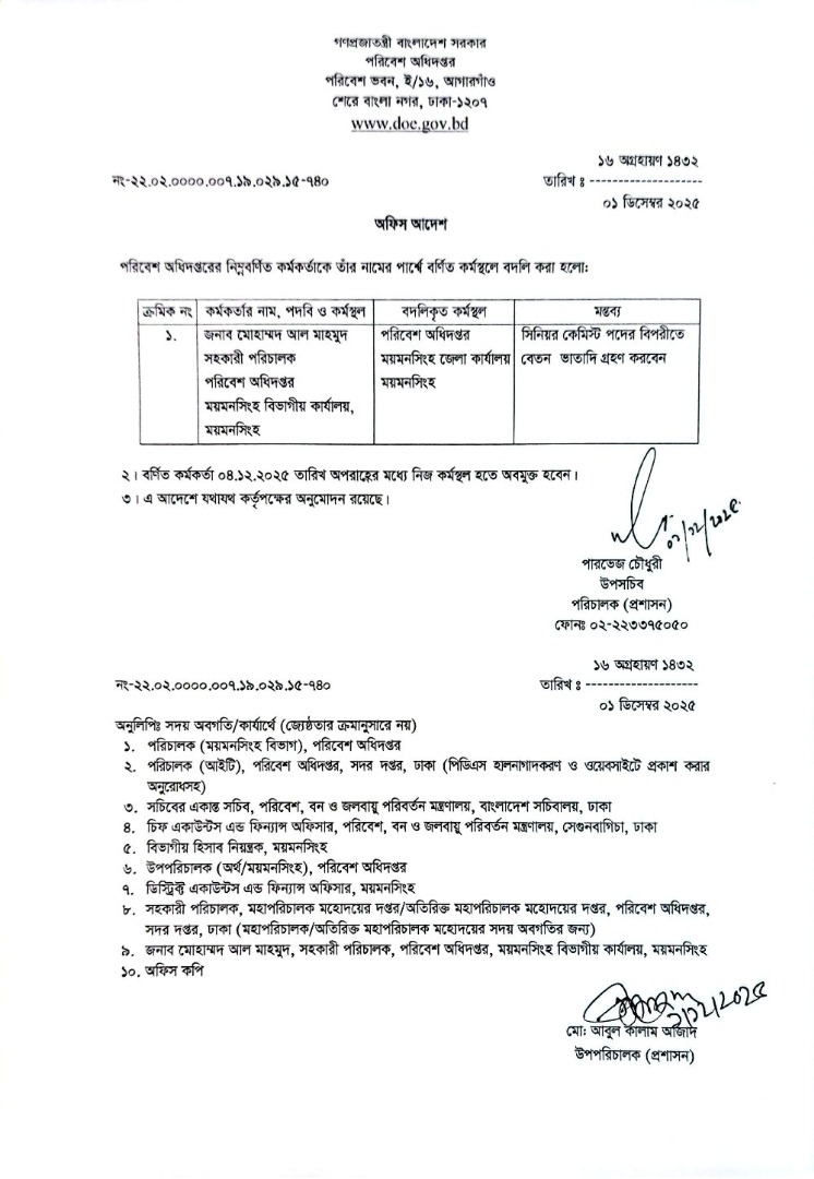 | বদলি আদেশ (সিনিয়র কেমিস্ট) | ১৮ আগস্ট ২০২৫ | Download |