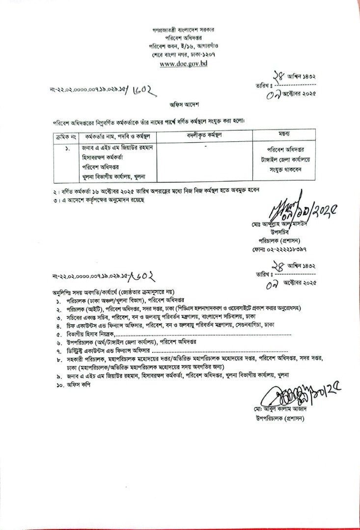 | বদলি আদেশ (গাড়ি চালক) | ১৭ মে ২০২৫ | Download |