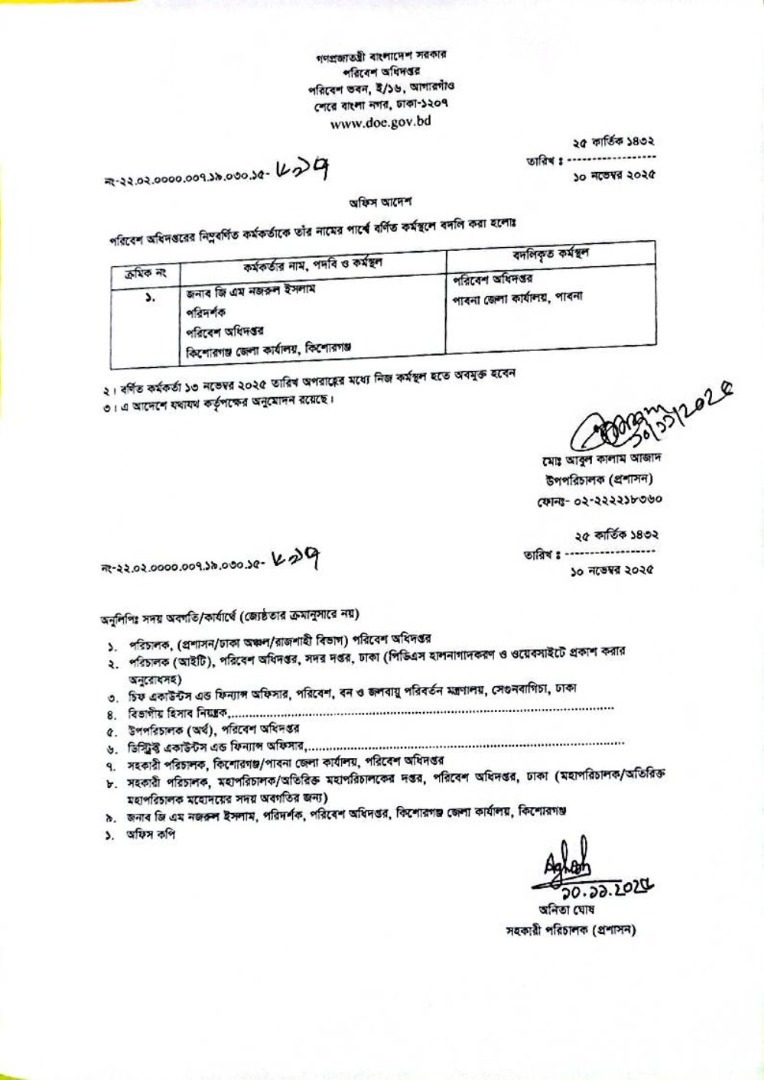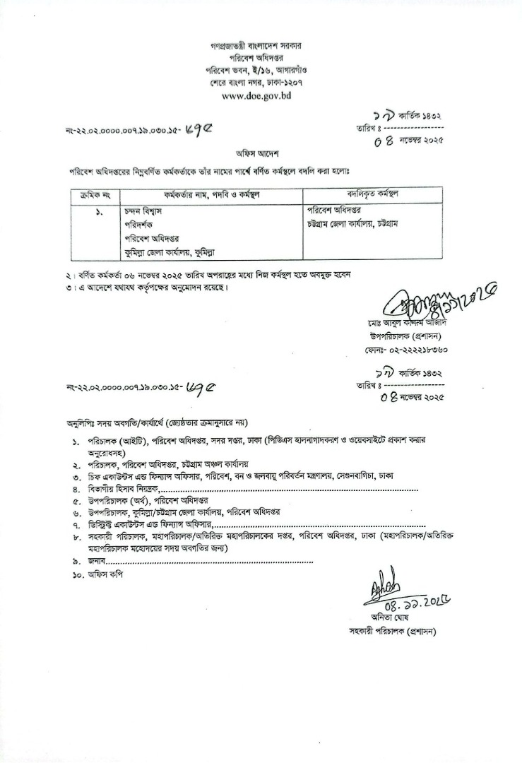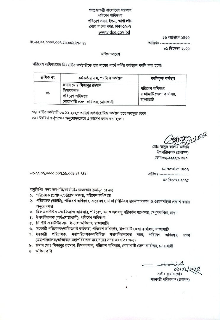 | বদলি আদেশ (গাড়ি চালক) | ১০ নভেম্বর ২০২৫ | Download |