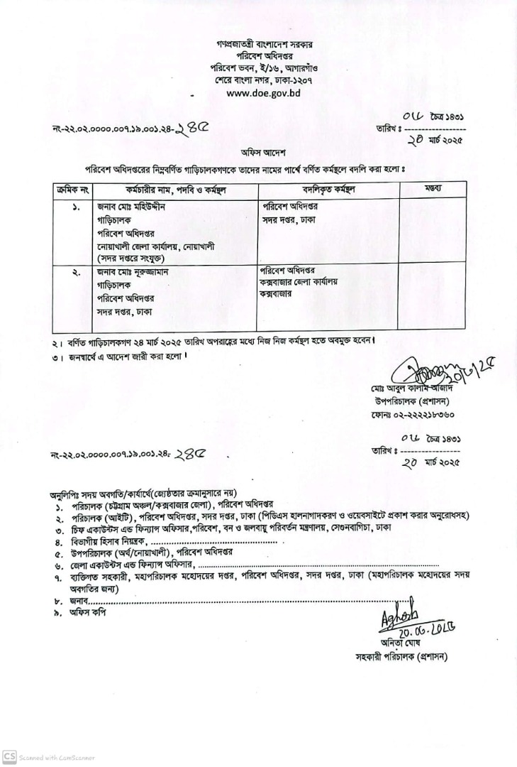 | বদলি আদেশ (গাড়ি চালক) | ২০ মার্চ ২০২৫ | Download |