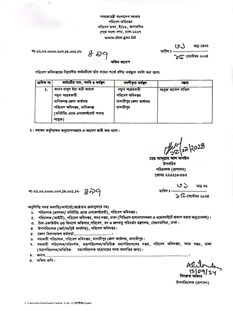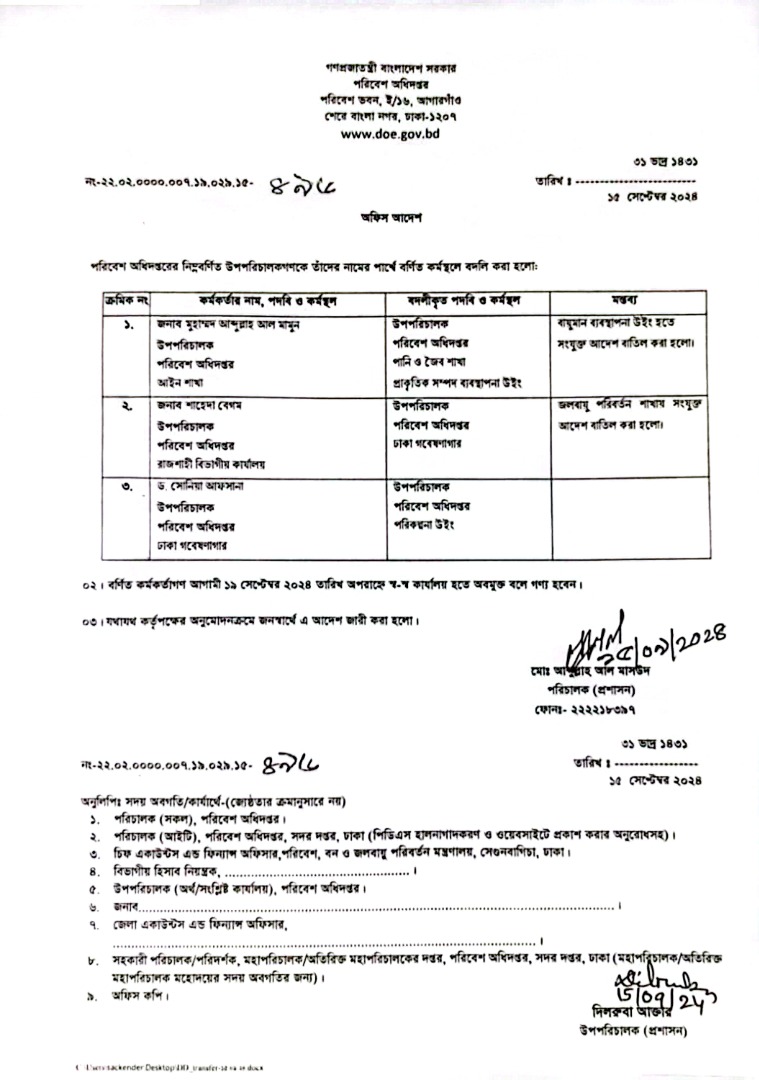 | বদলি আদেশ | ১৫ সেপ্টেম্বর ২০২৪ | Download |