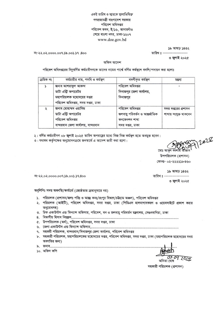 | বদলি আদেশ (ডাটা এন্ট্রি অপারেটর) | ০৩ জুলাই ২০২৫ | Download |