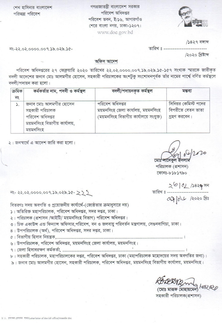 | কর্মচারীর ট্রান্সফার আদেশ | ২৪ জুলাই ২০১৯ | Download |