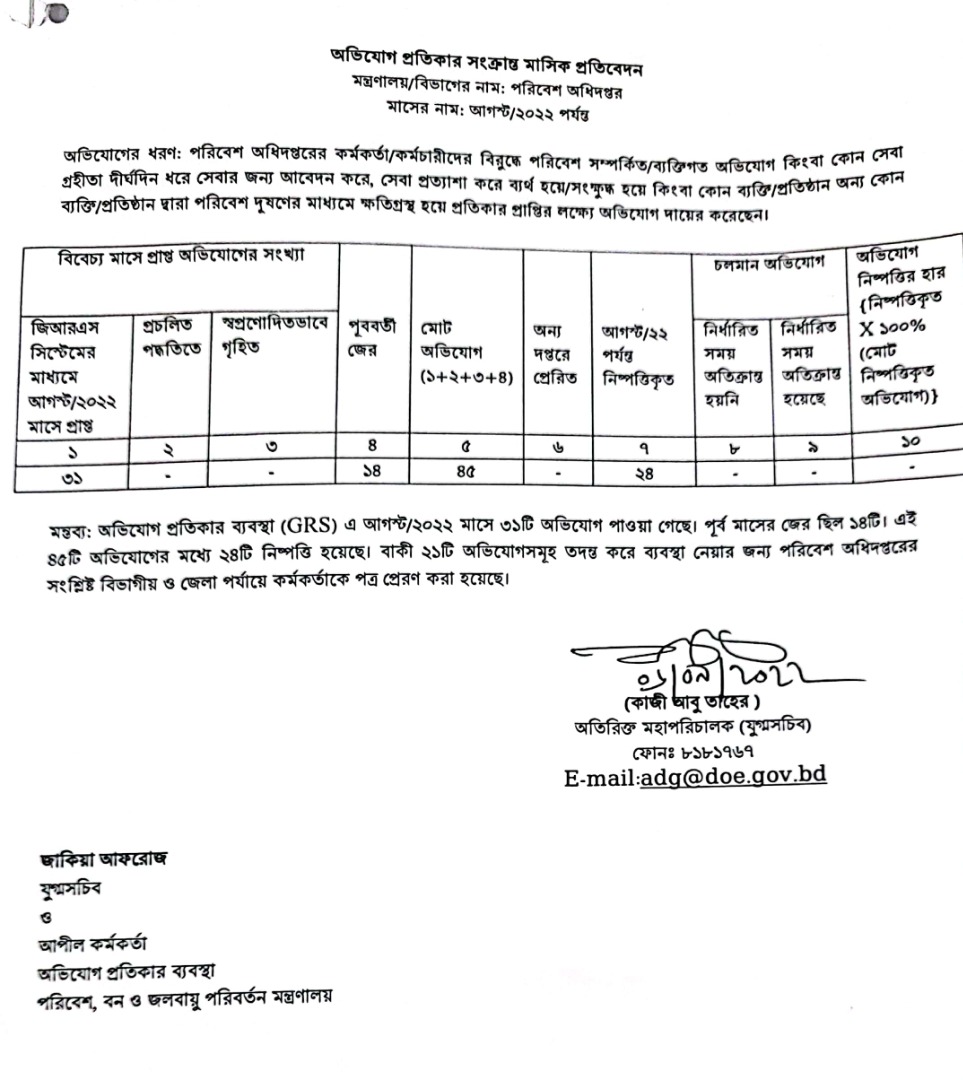 | অভিযোগ প্রতিকার সংক্রান্ত অগাস্ট ২০২৩ মাসের মাসিক প্রতিবেদন | 2023-09-07 | |
